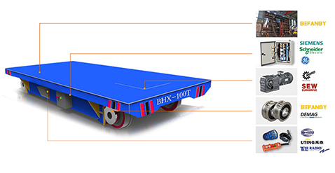 BHX:采用滑觸線將380V交流電源引入平車作為該平車的電力來源,其運(yùn)行頻率和使用時(shí)間不受束縛,適用于較長距離運(yùn)輸?shù)膱龊稀;|線安裝平車底部或兩側(cè),會對其他車輛的過往造成影響,但因其臺面較低,卻是流水線生產(chǎn)的 輸送設(shè)備。