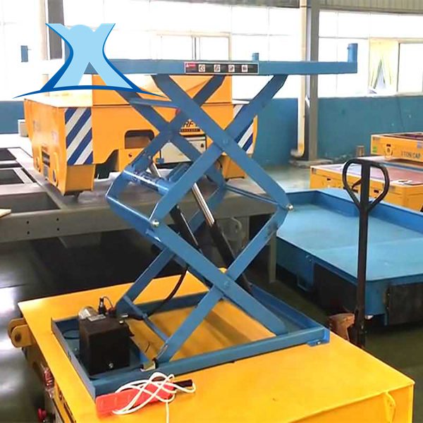 應用范圍:廣泛用于汽車、集裝箱、模具制造、鋼鋁加工、工件裝配等有設備工作線落差的生產(chǎn)流水線上,可根據(jù)轉(zhuǎn)運物件的特殊性臺面上增設各種固定架,如鋼鋁卷卷材運輸可在平臺上放置可拆卸V型架或增設圍欄等。
